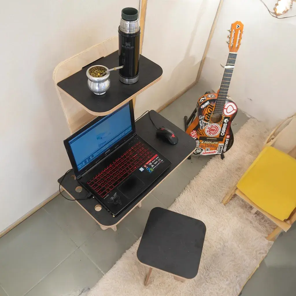 Perfect for compact apartments, dorm rooms, or shared spaces where every inch matters. Whether you’re working on a laptop, setting up a study corner, or needing a secondary workstation, the height-adjustable design adapts to your routine. Its ventilated main surface makes it ideal for electronics, while the slim profile ensures your space stays light, open, and flexible.